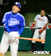2012.09.11 20: 55김태균, '승엽형님, 파울이네요'