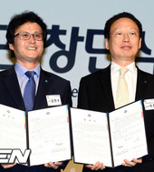 2012.09.12 11: 32협약서 교환하는 부천시장과 하나 외환 여자농구단 구단주