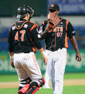 2012.09.14 19: 36윤석민-김원섭,'소중한 한점이야'
