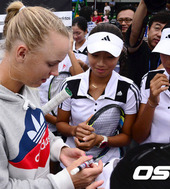 2012.09.16 15: 05세계 1위 워즈니아키에게 사인 받기 위해 몰린 청소년 선수들
