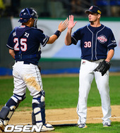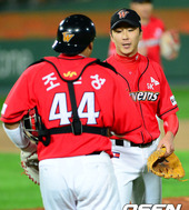 2012.09.18 21: 47조인성-정우람,'내일도 이기자고!'