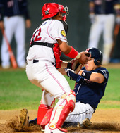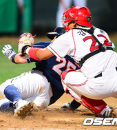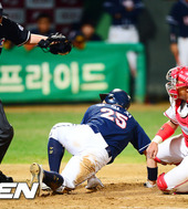 2012.09.18 20: 43양의지,'홈에 발을 쭉 뻗으며!'