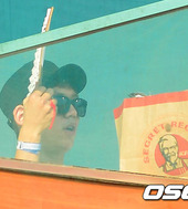2012.09.22 16: 52'윙크보이' 이용대,'야구장에 치킨이 빠질 수 없지~'