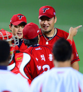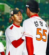 2012.09.25 21: 40완투승 김진우,'선배 향한 깍듯한 인사'