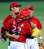 2012.09.25 21: 39완투승 김진우,'김상훈과 뜨거운 포옹'
