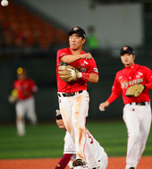 2012.09.26 19: 57정근우,'깡총 뛰어오르며 가볍게 송구!'