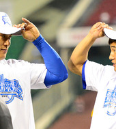 2012.10.01 20: 28이승엽,'상수야 우승 모자 잘 어울리지?'