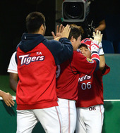 2012.10.03 18: 25서재응,'동점포 나지완과 나비 세리머니'
