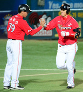 2012.10.04 19: 11선제 솔로포 모창민,'화끈하게 날렸어요'