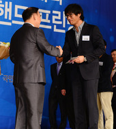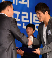 2012.10.05 13: 25연금증서 받는 배드민턴 정재성