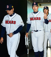 2012.10.07 14: 23손아섭-강민호-양승호 감독,'살짝 긴장한 표정'