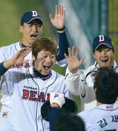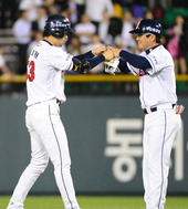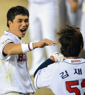 2012.10.08 20: 59홈밟은 김재호,'승리가 보인다'