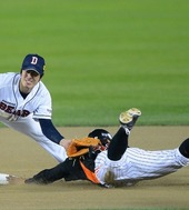 2012.10.09 19: 54홍성흔,'난 2루 도루하는 멋진 남자'