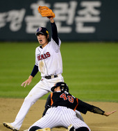 2012.10.09 19: 44기습도루 홍성흔, '가랑이 사이를 노린다'