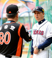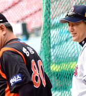 2012.10.09 16: 55진지하게 양승호 감독과 이야기 나누는 김진욱 감독