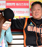 2012.10.09 16: 55양승호 감독,'내 모자가 좀 크지?'