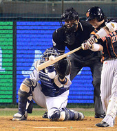 2012.10.09 21: 24강민호, '용덕한 형님, 쥑이네'