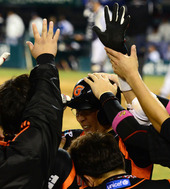 2012.10.09 21: 03용덕한,황재균,'승리의 주인공'