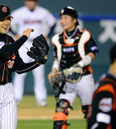 2012.10.09 21: 07정대현, '병살로 위기 넘기고 싱글벙글'