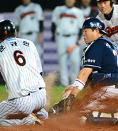 2012.10.11 19: 48아쉬운 용덕한, '동점 찬스에 작전 실패'
