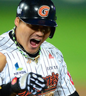 2012.10.12 19: 16손아섭,'2루타 환호,'표정은 싸울기세'