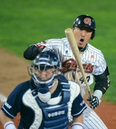 2012.10.12 22: 20홍성흔,'엇! 볼이 빠졌어'