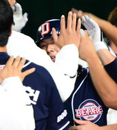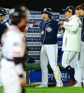 2012.10.12 18: 33환호하는 두산 더그아웃, '윤석민, 넘어가나요'