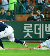 2012.10.12 18: 18김주찬,'공이 더 빨랐네'