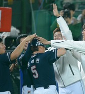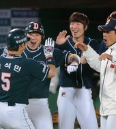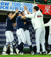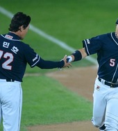 2012.10.12 18: 23김민호,'석민이 홈런포 오늘도 악수로 하이파이브'