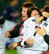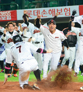 2012.10.12 22: 09환호하는 롯데,'이게 꿈은 아니지?'