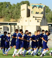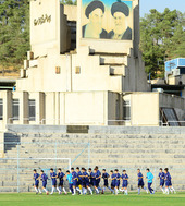 2012.10.15 03: 43이란 최고종교지도자 초상화 앞 훈련하는 축구A대표팀
