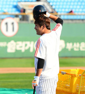 2012.10.19 17: 36문규현,'연습 기다릴때도 헬멧 써야겠네'