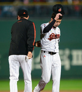 2012.10.19 20: 09마운드 내려가는 고원준,'갑자기 잘 안되네'