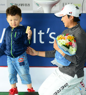 2012.10.21 13: 59은퇴 꽃다발 받는 김미현,'슈퍼땅콩 이제 아이의 엄마로~'