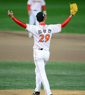 2012.10.22 18: 20만루서 강민호를 삼진으로 잡고 환호하는 김광현