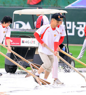 2012.10.22 15: 23빗물 제거하는 문학구장 "염전은 아니에요"