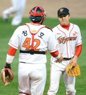2012.10.28 17: 59정우람-정상호,'실점했지만 잘 막았어'