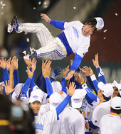 2012.11.01 21: 23헹가래 받는 류중일 감독,'2연패 달성했어'