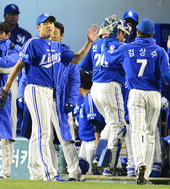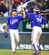 2012.11.01 19: 58배영수,'박석민을 향해 기쁨의 발차기!'