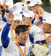 2012.11.01 22: 07헹가래 받는 오치아이, '행복하다'