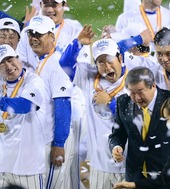 2012.11.01 21: 52진갑용-이승엽,'한국시리즈 우승트로피를 번쩍!'