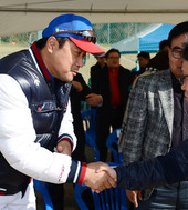 2012.11.03 18: 32양준혁 해설위원,'공손하게 악수'
