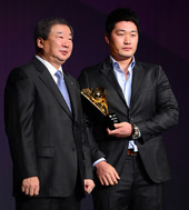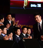 2012.11.05 15: 38'박수 받으며 수상대에 오르는 MVP 박병호'