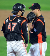 2012.11.08 19: 37강민호-송승준,'만루 위기는 넘겼어'