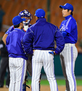 2012.11.09 18: 57오치아이 코치와 이야기 나누는 배영수