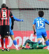 2012.11.15 21: 15데얀,'머리에 걸렸으면 골이었는데'