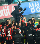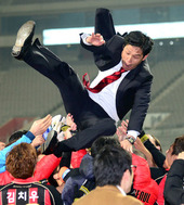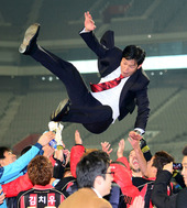 2012.11.21 22: 05헹가래 받는 최용수 감독,'우승 사람 잡겠네'