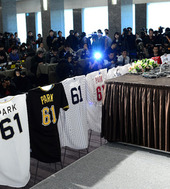 2012.11.30 11: 49박찬호,'내셔널리그 우승 반지 끼고 기자회견 참석'