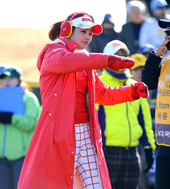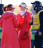 캐디와 이야기 나누는 신지애,'눈빛 한번 예리하네'