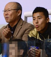 2012.12.03 19: 54박항서감독-백지훈,'오늘은 농구보러 왔어요'